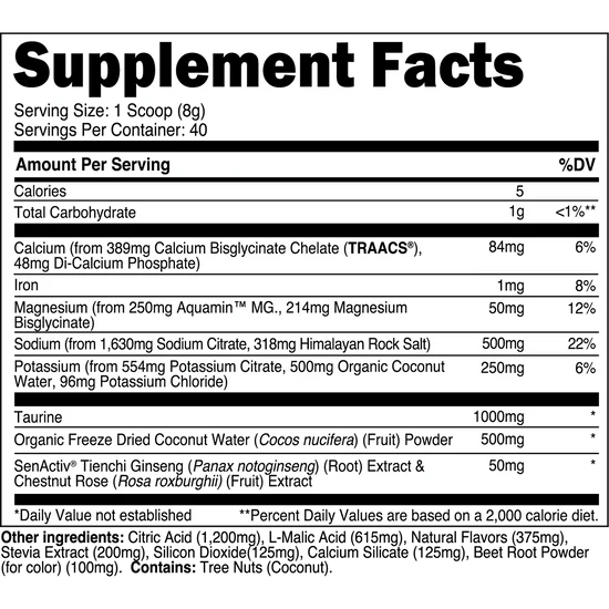 Transparent Labs Hydrate is a sugar-free electrolyte powder featuring bioavailable minerals, taurine, SenActiv®, and coconut water powder to help you stay hydrated throughout the day and during training. Unlike conventional “sports nutrition drinks” and many electrolyte powders, Transparent Labs Hydrate contains no added sugars, artificial coloring, or artificial sweeteners.